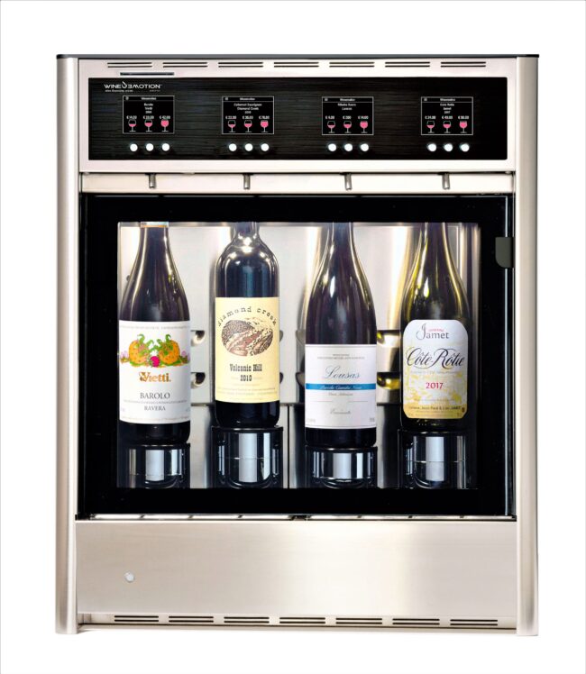 De QUATTRO SELF is een elegante selfservice wijndispenser (optioneel met software en chipcards/RFID of Nayax contactloos betalen) , ontworpen voor kleinere horecagelegenheden, lounges en hotels. Deze dispenser kan vier flessen wijn per ingesteld volume tappen op de door u gewenste temperatuur, waarbij stikstof of argon wordt gebruikt om oxidatie te voorkomen en de kwaliteit van de wijn te waarborgen. Hierdoor blijven smaak en aroma’s tot vier weken behouden, wat verspilling helpt voorkomen en de kwaliteit van het product verbetert.